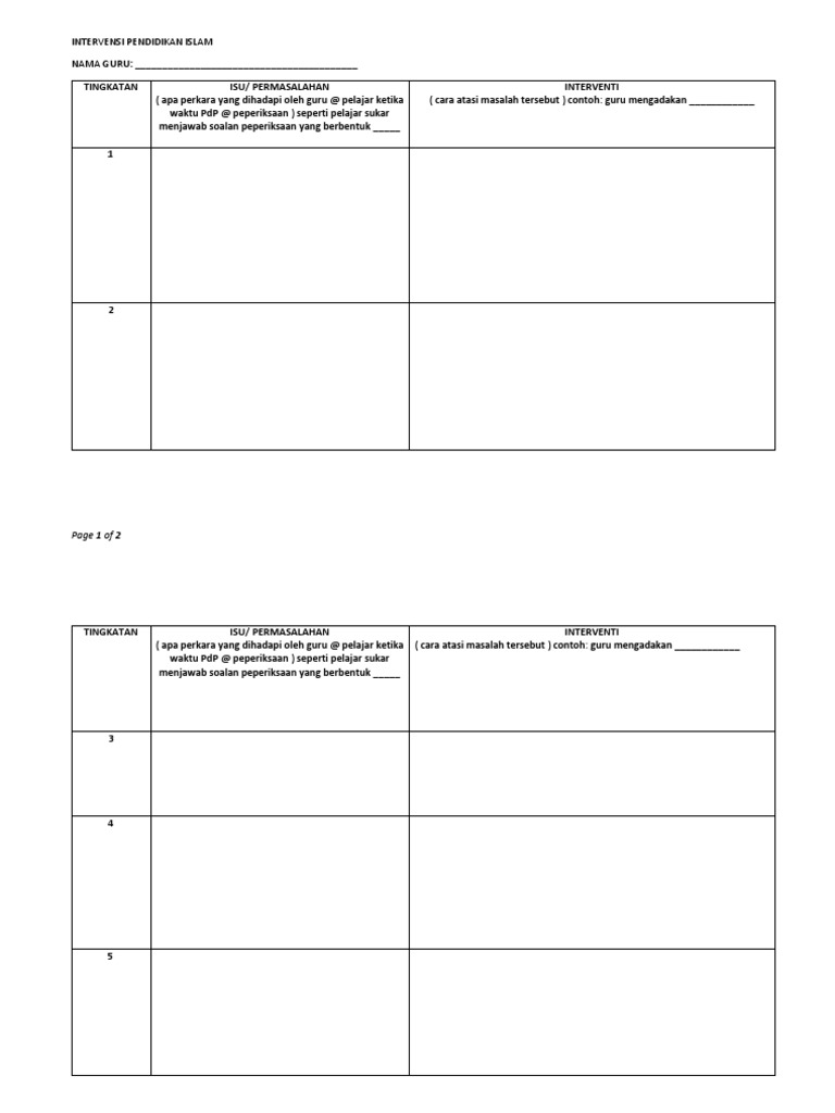 Pelan Intervensi Lima Langkah Pendidikan Islam 3c Sederhana Halus Pdf